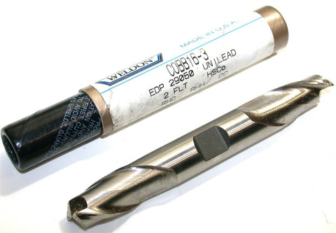 You are bidding on a New Weldon 1/2" diameter HSS 2 Flute Center Cutting Double End Mill, No. C0BB16-3.