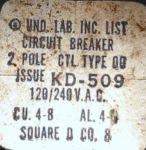 Square D QO250 2 Pole Circuit Breaker 50A 120/240VAC 1 PH Plug In Mount