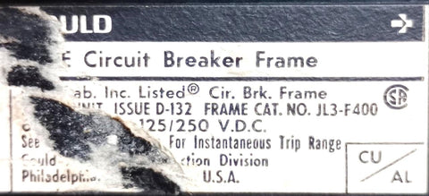 Gould ITE JL3-F400 3-Pole Circuit Breaker 400A 600VAC 125/250VDC