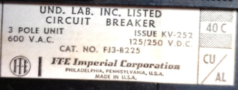 ITE FJ3-B225 3-Pole Circuit Breaker 225A 600V 3 Phase Bolt-On Mount