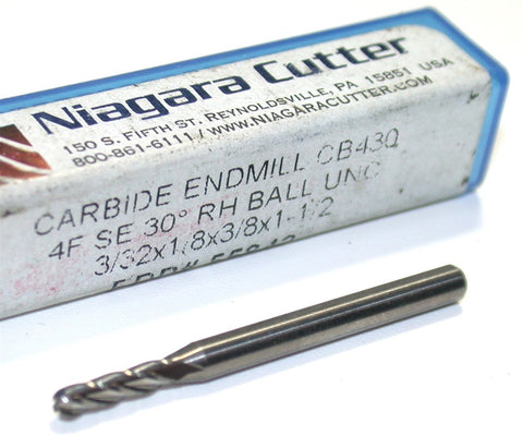 Niagara 55842 3/32" Diameter 1/8" Shank 4 Flute Carbide Ball End Mill