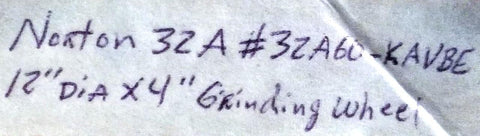 Norton 32A60-KAVBE Grinding Wheel 32A 12" x 4" 2705Rpm Max C720223