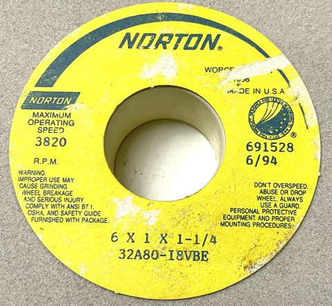 Norton 32A80-I8VBE Surface Grinding Wheel 6" x 1" x 1-1/4" 14 Grit 3820 RPM