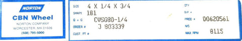 Norton CVSG80-1/4 Superabrasive Wheel 803339 8115rpm Max 4" x 1/4" x 3/4"