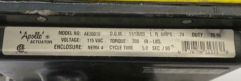 Apollo AE20010 Electric Actuator 115 VAC Nema 4