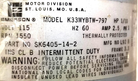 Emerson SK6405-14-2 Mini-Pac Actuator K33MYBTW-797 1550rpm 115V 60Hz 1/10HP 1PH