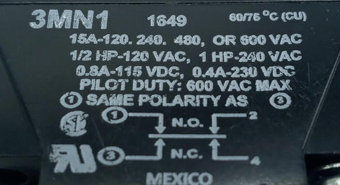 Honeywell Micro Switch 3MN1 Snap Action Switch Plunger Actuator 15A @ 600VAC