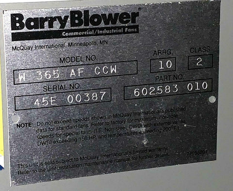 Barry Blower W-365-AF-CCW Industrial Blower 602583-010