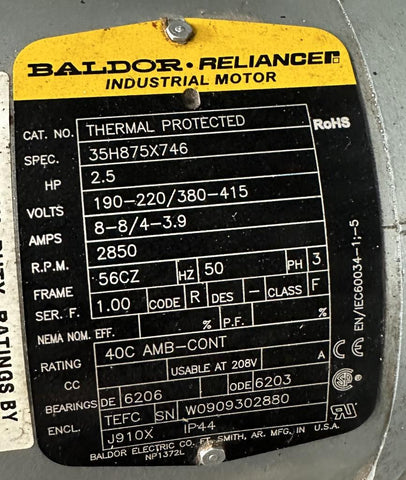 Baldor 2.5 HP Motor 35H875X746