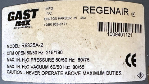 Gast R6335A-2 Regenerative Air Blower 2.5 HP 2850RPM 190-220/380-415V 3 Phase