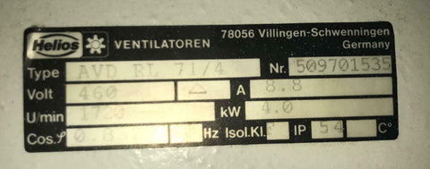 Helios AVD RL 71/4 Vent Fan Blower - 1720 RPM, 4 KW