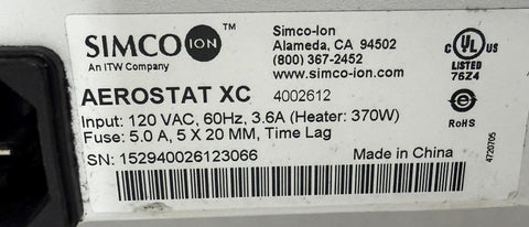 Simco Aerostat XC Ionizing Air Blower 120V 60Hz 3.6A 370W 4002612