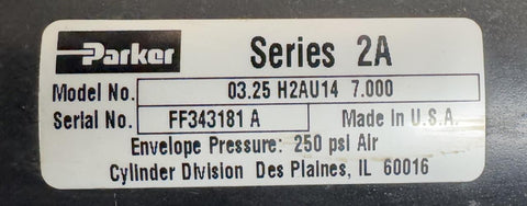 Parker 03.25 H2AU14 7.000 Pneumatic Cylinder 250 PSI Series 2A