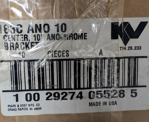 Box of (10) Knape & Vogt KV 183C ANO 10 Center Flange Bracket 10″Anochrome