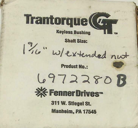 New Fenner Drives Trantorque 6972280 B Keyless Taper Lock Bushing 1-9/16" Bore