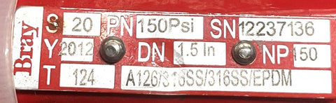 Bray Series 20 Butterfly Valve 1.5" 150 PSI W/ Handle 12237136