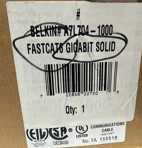 Belkin A7L704-1000 CAT6 Solid Bulk Cable 23 AWG 4-Pair Gray 910 ft