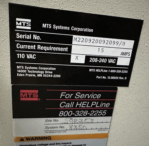 Frame is a Instron 1122 that appears to have been later upgraded by MTS Systems (ReNew Package). The unit has not been tested. It includes everything pictured including the Instron Extensometer, Cables, and MTS Control.
