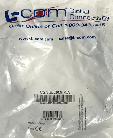 L-Com CSNULL9MF-5A Deluxe Null Modem Cable DB9 Male / DB9 Male 5 Ft