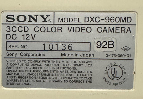 Sony DXC-960MD 3CCD Color Video Camera 12V w/ HRP060-ENG12 Adapter 1X