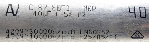 AV C.87.8BF3-40uf Capacitor Motor +-5% P2 MKP AC