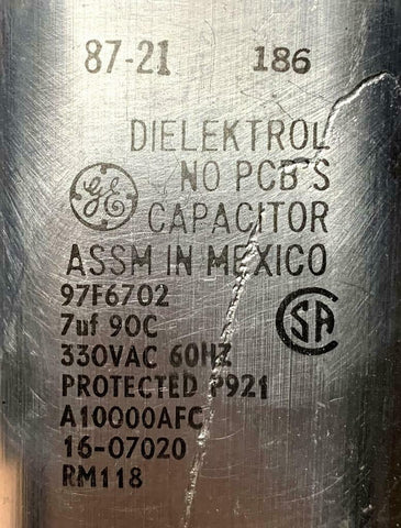 General Electric GE 97F6702 Dielektrol Capacitor 7 UF 330 VAC