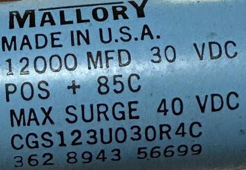 Mallory CGS123U030R4C Electrolytic Capacitor 12000uF 30 VDC -10% + 75%