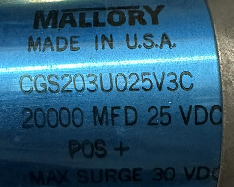 Mallory CGS203U025V3C Electrolytic Capacitor 20000 µF 25VDC 10%+75% w/ Clamp