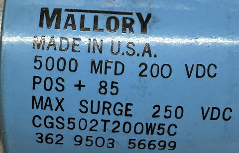 Mallory CGS502T200W5C Electrolytic Capacitor 5000uF 200V-10+50% w/ Clamp
