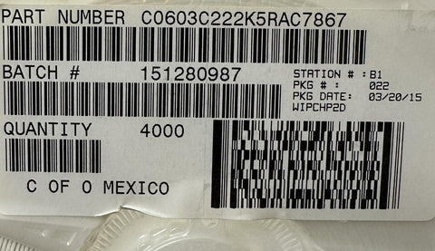 Model: C0603C222K5RACTU