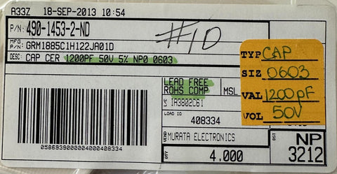 Reel of 3868 Murata GRM1885C1H122JA01D Multilayer Ceramic Capacitor 1200pF 50V
