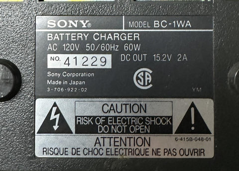 Sony BC-1WA Battery Charger 4-Slot 120V 50/60Hz 60W For NP-1 Batteries