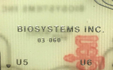 This listing is for a used Biosystems Inc. circuit board.