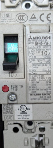 Mitsubishi NF50-SVFU No-Fuse Molded Circuit Breaker 10A 2P 50/60Hz NF50-SVFU210