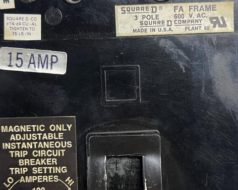 Square D FAL-36015-13M Circuit Breaker 3-Pole 15A 600VAC FAL3601513M