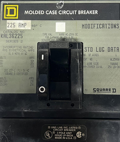 Square D KAL36225 Molded Case Circuit Breaker 225 A 600 V 3-Pole