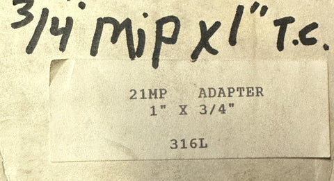 21MP Sanitary Clamp Adapter 1" Tri-Clamp x 3/4" Male NPT Stainless Steel