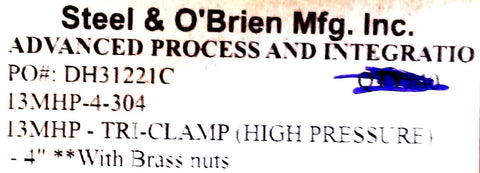 Steel & O'Brien 13MHP-4-304 High Pressure Tri-Clamp 13MHP 4" (Set of 3)