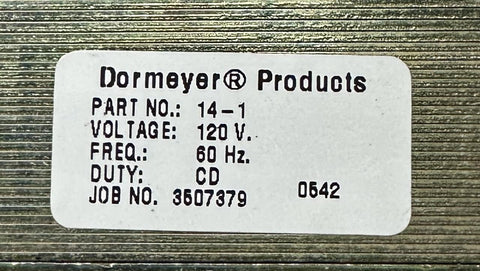 Dormeyer 14-1 Solenoid Coil 115VAC 60Hz 2-Wire 141