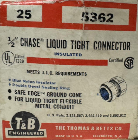Thomas & Betts 5362 Liquid Tight Connector 1/2" Chase