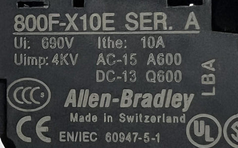 Allen-Bradley 800F-X10E Green Push Button Switch Series A w/ Contact Block