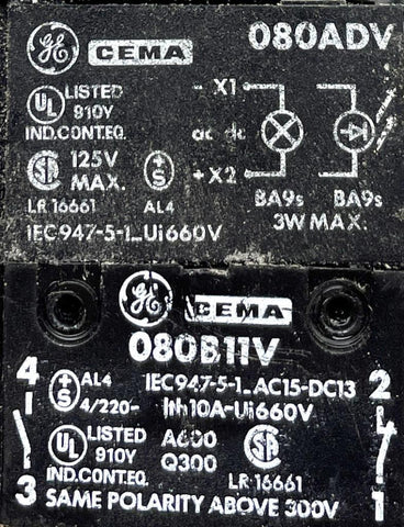 General Electric 080ADV & 080B11V Contact Block W/ White Push Button 125V 3W