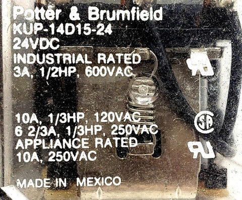 Potter & Brumfield KUP-14D15-24 Relay 3A-10A 24VDC 120-600VAC With Contact Block