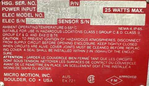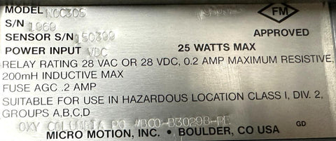 Micro Motion N0C30S Digital Rate Totalizer Power Input VDC 25W Max