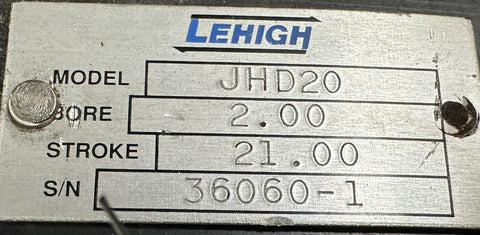 Lehigh JHD20 Pneumatic Cylinder 2" Bore 21" Stroke