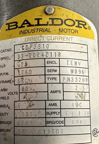 Baldor CDP3310 DC Motor 1/4 HP 1750 RPM 56C TENV 90 VDC