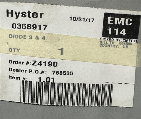 Hyster 0368917 Rectifier Assembly Diode 3 & 4 Forklift Part