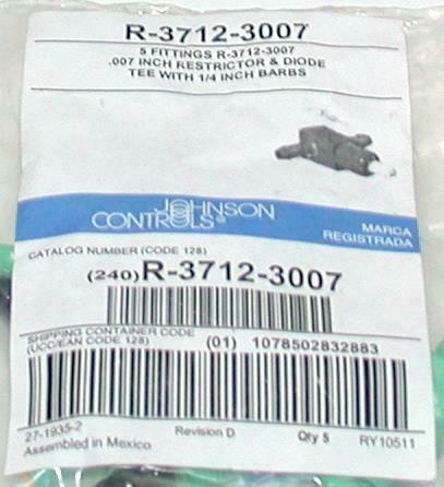New Johnson Controls R-3712-3007 Pack of 5 New Restrictor & Diode Tees