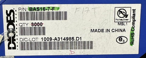 Reel of 2010 Diodes Inc BAS16-7-F Switching Diode 75V 4ns SOT-23-3 SMD