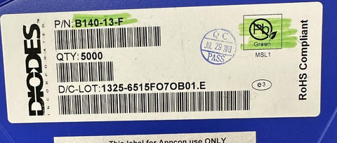 Reel of 3726 Diodes Inc B140-13-F Schottky Diode 40V 1A 2-Pin 500mV SMA SMD